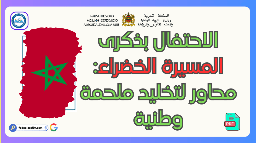 تُعد ذكرى المسيرة الخضراء، التي توافق السادس من نونبر من كل عام، محطة تاريخية ووطنية خالدة في وجدان الشعب المغربي. إنها ليست مجرد ذكرى لاستكمال الوحدة الترابية، بل هي مناسبة متجددة لغرس قيم المواطنة والتضحية والوحدة في الأجيال الصاعدة. ولذلك، تتنوع أشكال الاحتفال بهذه الذكرى المجيدة لتشمل مختلف الفضاءات، من المؤسسات التعليمية إلى المراكز الثقافية، مع التركيز على الأنشطة التفاعلية والتربوية. يهدف هذا المقال إلى تسليط الضوء على خمسة محاور رئيسية تشكل عُدة الاحتفال بهذه الذكرى، وهي: العروض والمسرحيات، رسومات التلوين، المسابقات الثقافية، وإعداد التقارير.